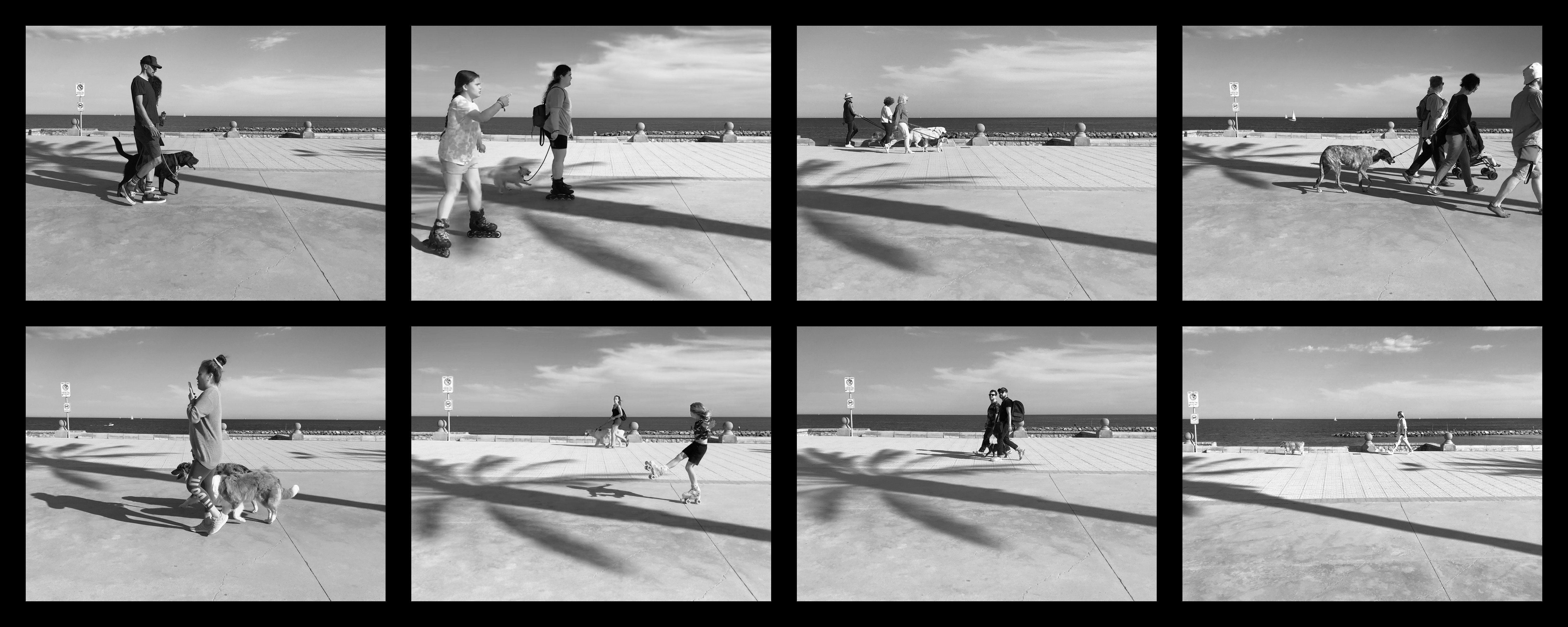 Gelegentlich lässt Ilse Wecker Collagen aus ihren Fotografien entstehen; auch in diesen zeigt sie den Menschen im Zentrum ihrer Arbeiten. Dabei spielen momentane Assoziationen eine gewichtige Rolle.